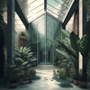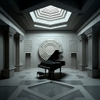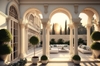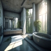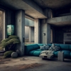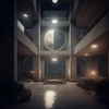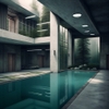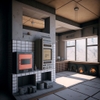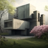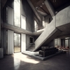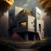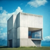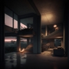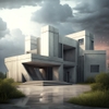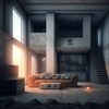 コンクリートの邸宅のイラストです。内観と外観があります。