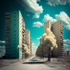 AIが得意とするダイナミックな遠景のイラストが含まれます。
