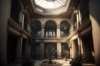 異世界ファンタジーに登場する遺跡をテーマとした、上空から見渡したAIイラストです。