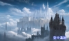 異世界ファンタジーに登場する空中遺跡をテーマとしたAIイラストです。空に浮かぶ遺跡や、雲海の地に建造された遺跡などが描かれています。