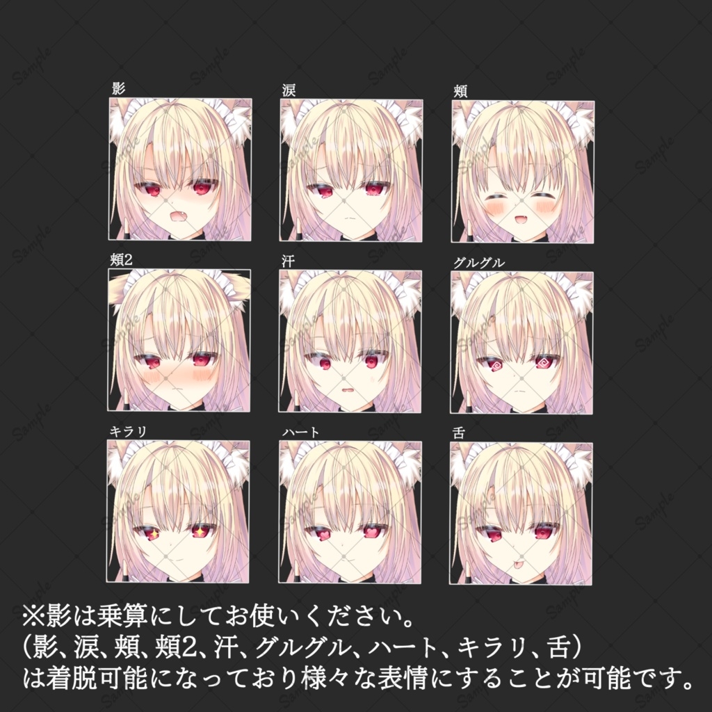 ・着脱可能 影、涙、頬、頬2、汗、グルグル、キラリ、ハート(立ち絵に重ねてお使いください。)