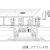 店内全体の視点や……続きは【トーンつき】店舗_背景素材集26(ファミレス)[背景倉庫] RJ01448618へ
