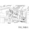 学校のモノク……続きは【トーンつき背景】学校_背景素材集31(外観)[背景倉庫] RJ01498943へ