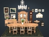 SketchUpで作ってみた、ヴィクトリアンスタイルの欧風アンティークな食堂の3Dモデルです。