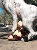 爆乳で生意気な女剣士が、巨大な狼のような獣に種付けされるCG集です。
