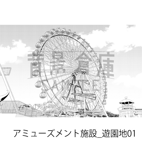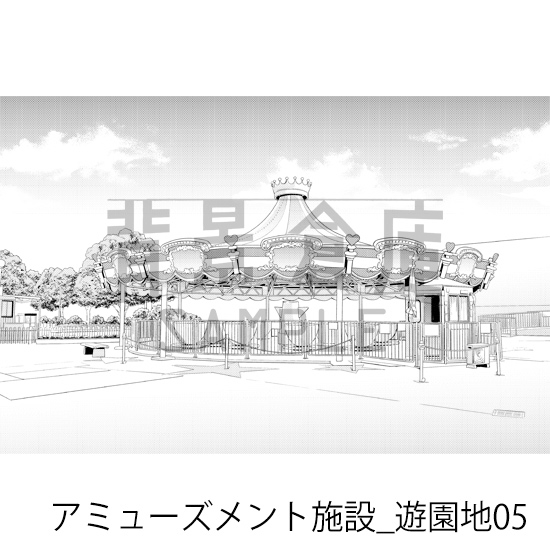 [背景倉庫]【トーンつき背景】アミューズメント施設_背景素材集8(遊園地) RJ01607993
