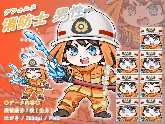 [とんがりスタジオ]【デフォルメ素材】仕事_消防士_男性_かわいい系_差分有り RJ01617482