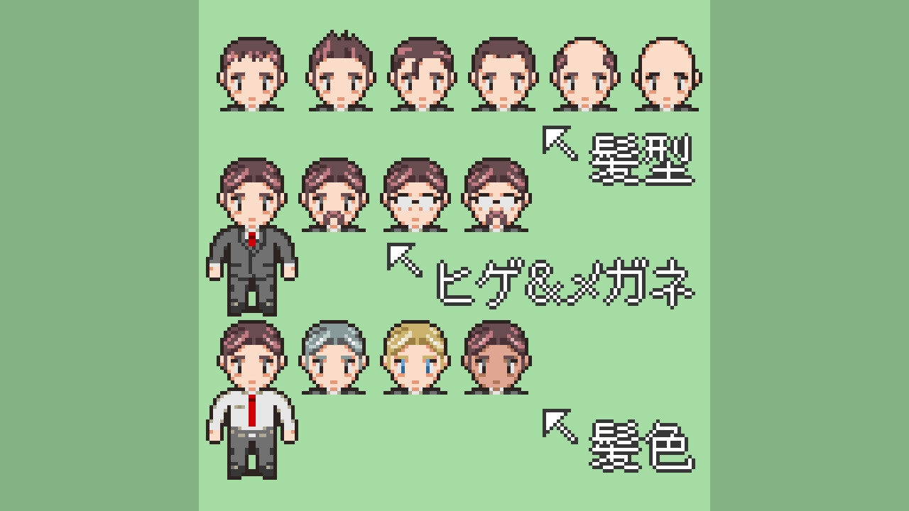 RPGツクールMV/MZ対応 スーツ男性 モブ 歩行素材 現代 224体(29ファイル)[RJ01618796] の詳細等へ