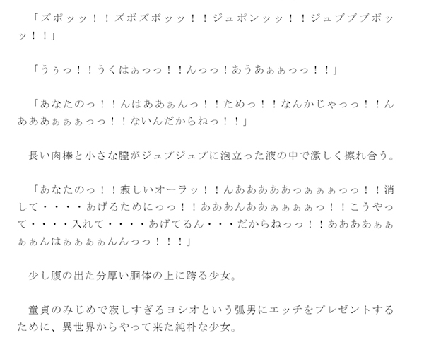 モテない童貞オヤジのヨシオの元に現れたブラなし下着姿の少女天使異世界からやって来た彼女はヨシオにたっぷりエッチをプレゼント[RJ175184] の詳細等へ