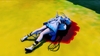少女が黒服の男に刀で斬られ、肉塊になります。