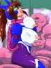 囚われた正義の爆乳変身ヒロイン、ブルーラビット。