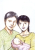 清楚な人妻・優美の幸せ、穏やかな日々 と 家族に迫る(?)危害から守ってくれる人物の元へ自らの意思で向かったが… の二部構成イラストです。
